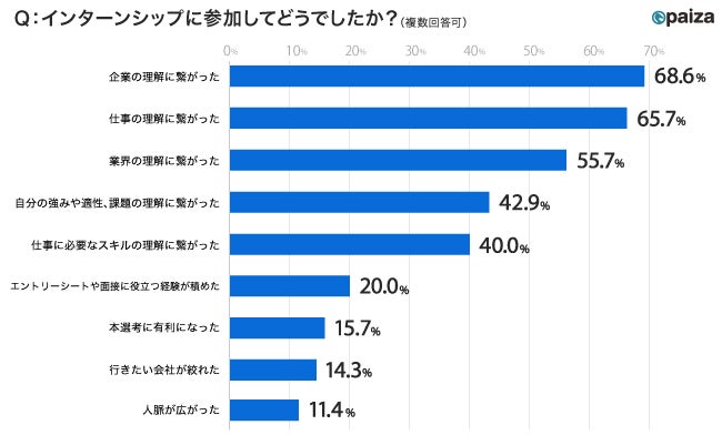 インターンは新卒学生を採用する企業、就職する学生双方にとってメリットが大きく、近年さらに重要度が増しており、学生の参加率も高くなっています。24年卒向けの以下の調査を見ると、学生は体験できる内容や職種に興味を持ってインターンに参加するものの、結果として企業理解や自身の強み、課題の理解などが進み、本選考に活かせる貴重な経験を積むことができていることが分かります。