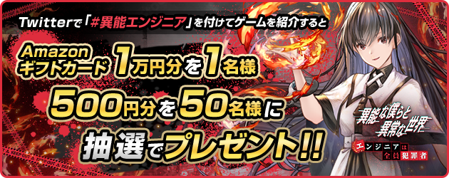 応募方法:『異能な僕らと異常な世界』内のTwitterシェアボタンから「#異能エンジニア」を付けてゲーム内容や進行状況をツイート