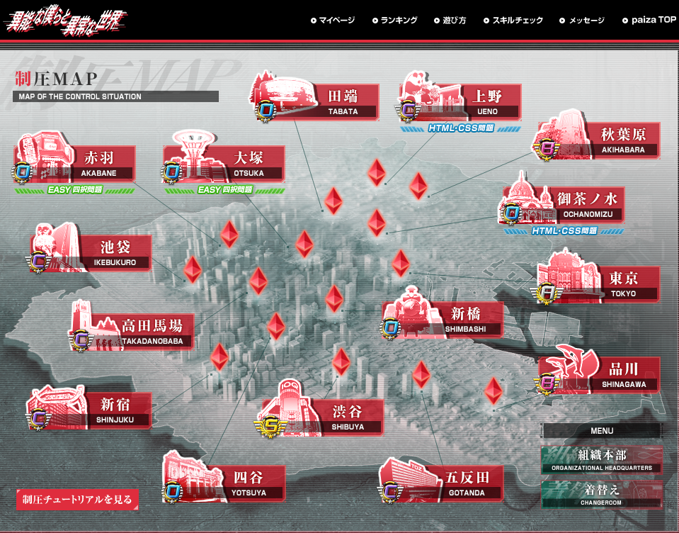 制圧マップは東京をベースにしたマップが表示され、各エリアで問題の難易度が異なります。すべてのエリアを制圧し、エンジニアの自由を守りましょう。