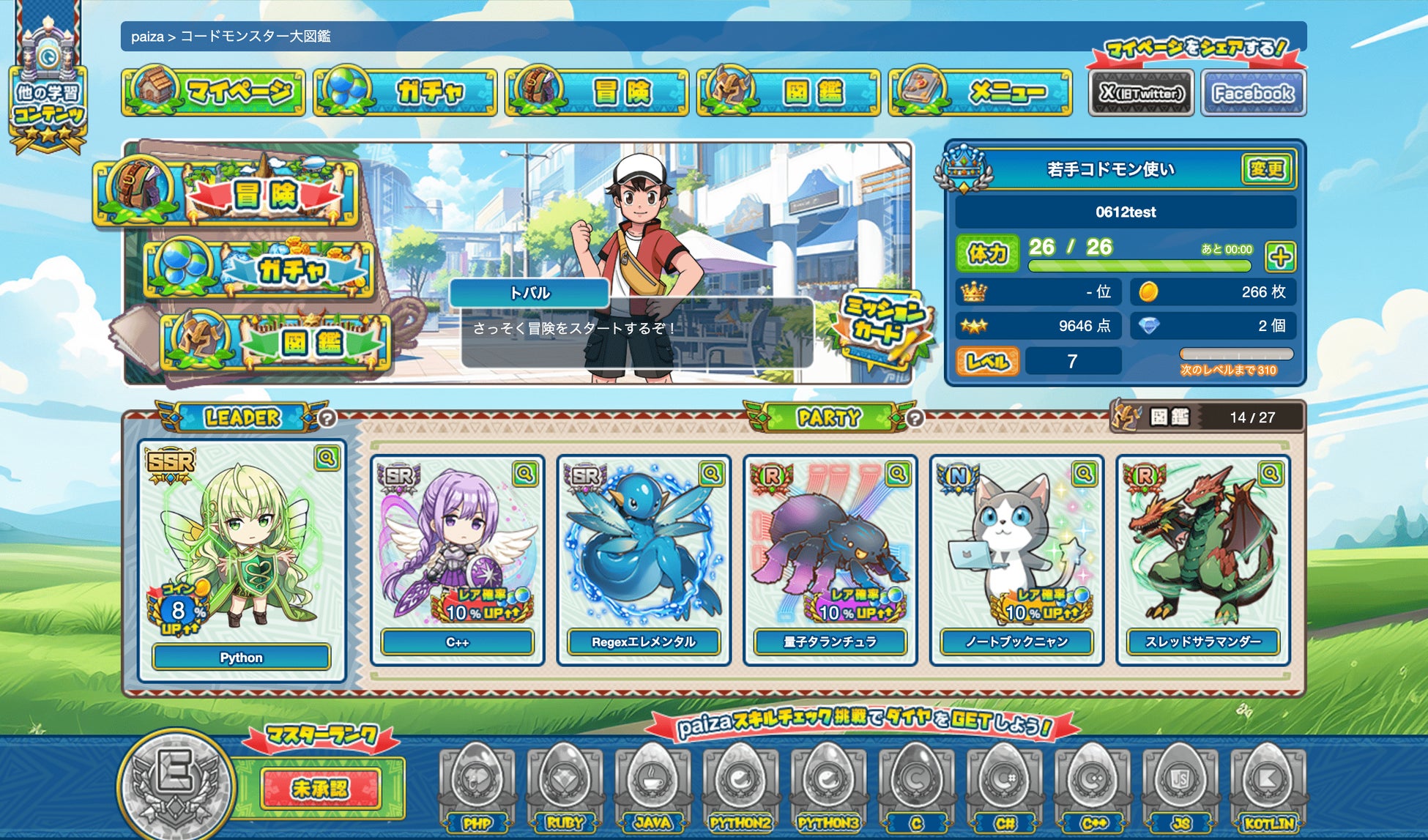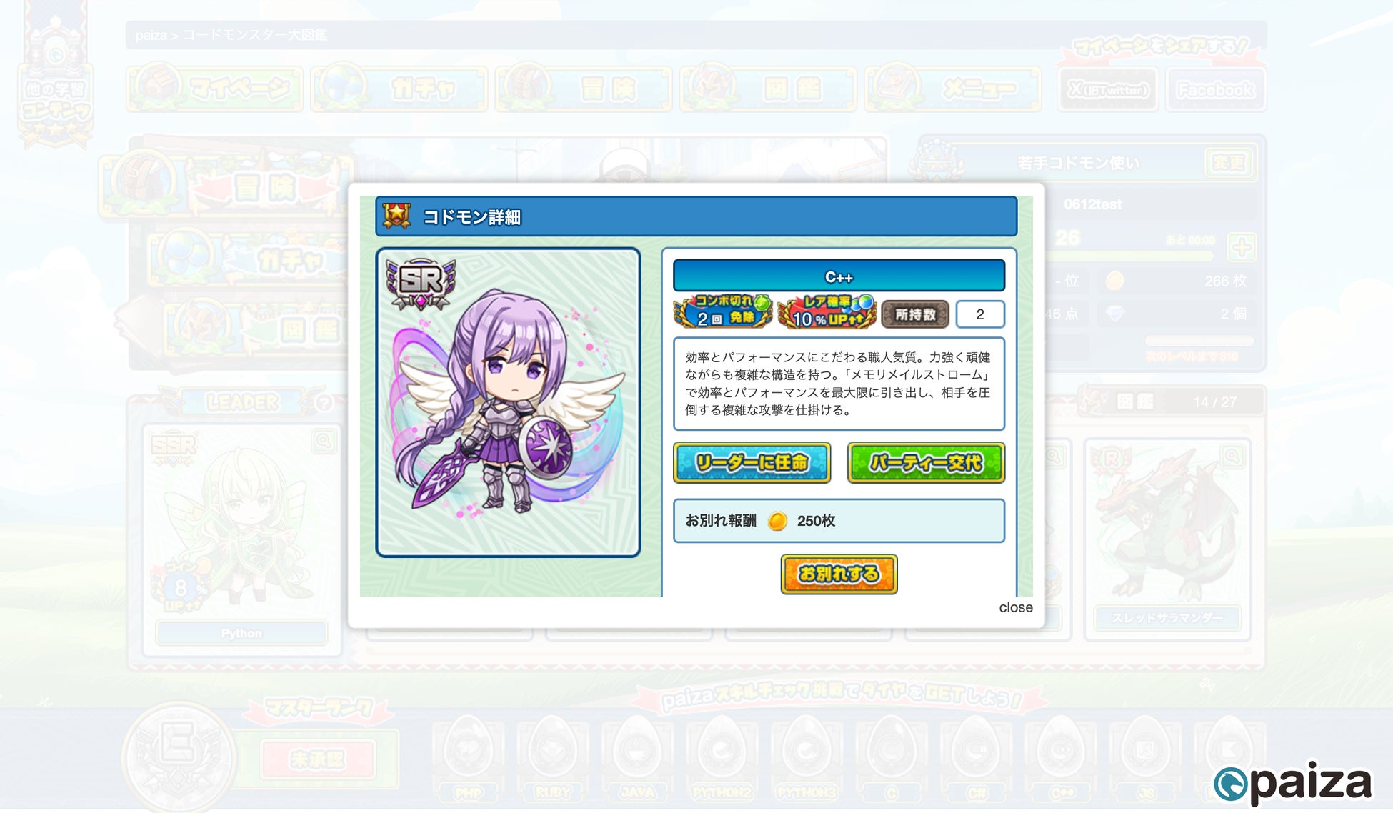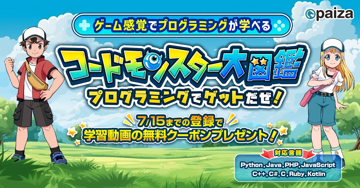 paiza、シリーズ累計プレイ回数1,000万回を超える楽しみながらプログラミングに触れるプログラミングエンタメの新作ゲーム『コードモンスター大図鑑 プログラミングでゲットだぜ!』を本日より無料公開!