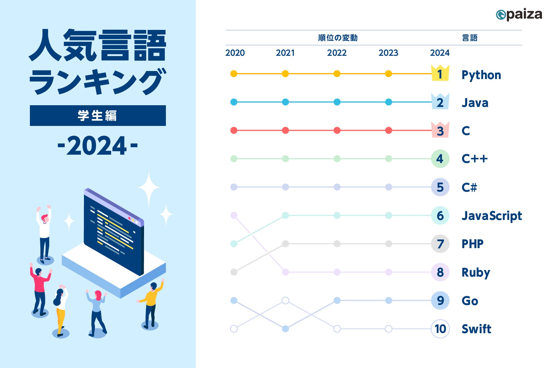 学生の中ではPython、Java、C、C++、C#が不動のトップ5