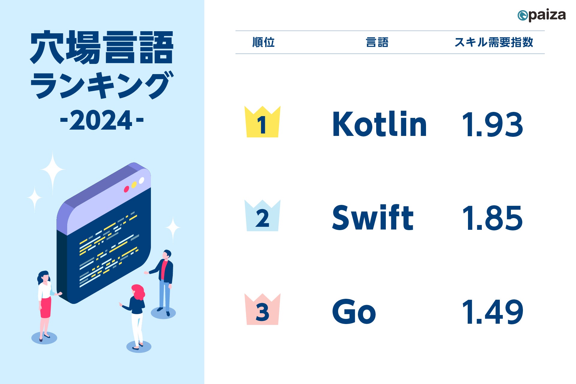 また、1位から6位までは2023年の同ランキングから順位が動いていないなど、昨年と比較して言語別需給バランスに大きな変動が無かったことがうかがえます。