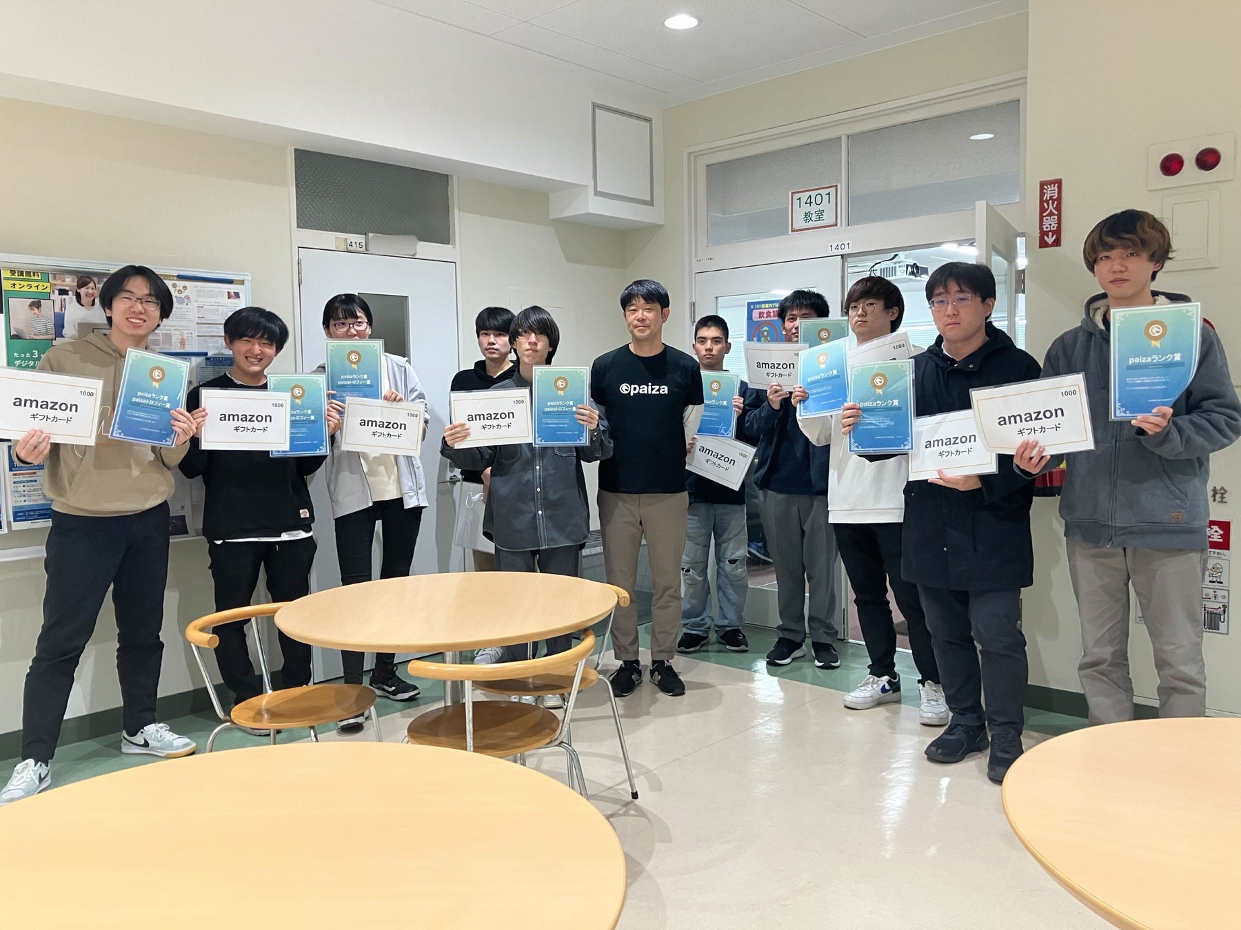 この度は、paiza株式会社と産学連携の形で特別授業を実施していただき、誠にありがとうございました。日頃より「paizaラーニング」や「プログラミングスキルチェック」など、様々な形で大変お世話になっております。今回の特別授業では、学生たちがデザイン思考に基づく課題解決のプロセスを学び、現実の課題に対して主体的に考え、解決策を提案する力を養いました。最終プレゼンテーションでは、各チームが創意工夫に富んだ提案を行い、学生たちの成長とともに、大きな可能性を感じることができました。今後もこのような連携を通じて、社会に貢献できるIT技術者の育成に努めてまいります。