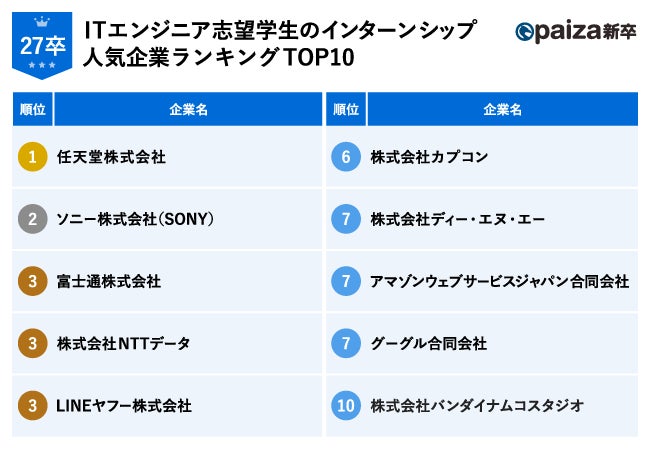 27卒インターンシップ人気企業ランキングを発表!ITエンジニア志望学生のインターンシップ希望と参加後傾向についての調査レポート